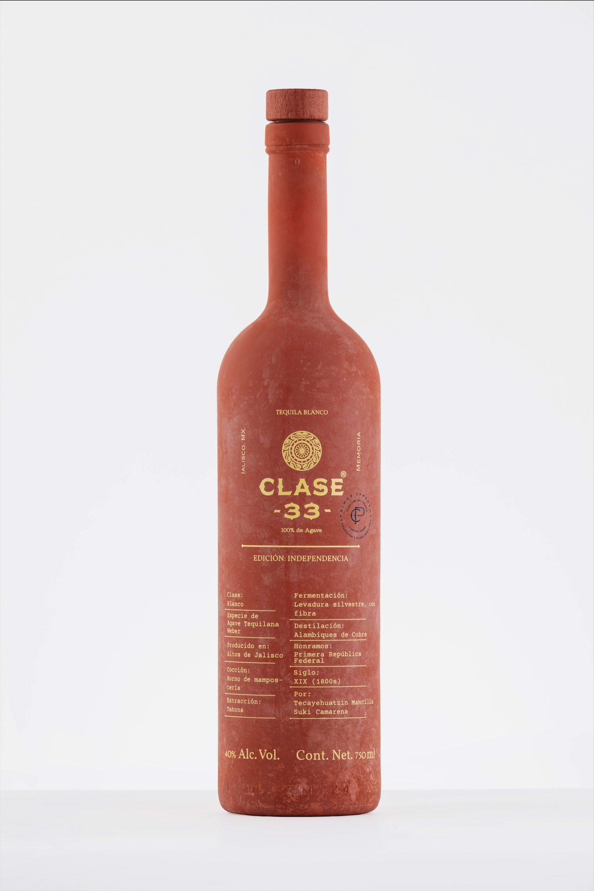 - Botella tono rojo terracota: los suelos ricos en hierro de Los Altos de Jalisco.